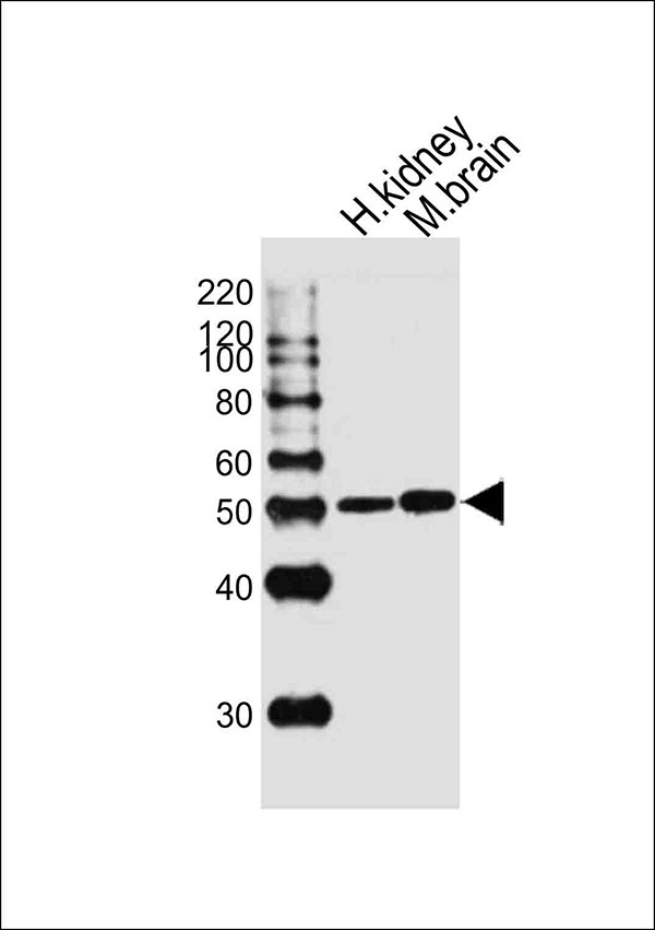 Western blot analysis of lysates from human kidney,mouse brain tissue lysate (from left to right), using IHH Antibody (C-term)(Cat. APR17794G). APR17794G was diluted at 1:1000 at each lane. A goat anti-rabbit IgG H&L(HRP) at 1:10000 dilution was used as the secondary antibody.Lysates at 20ug per lane. |