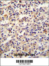 IGF2BP2 antibody(C-term) (Cat. APR07955G) immunohistochemistry analysis in formalin fixed and paraffin embedded human spleen tissue followed by peroxidase conjugation of the secondary antibody and DAB staining. This data demonstrates the use of the IGF2BP2 antibody(C-term) for immunohistochemistry. Clinical relevance has not been evaluated.