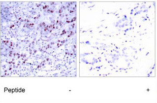 Immunohistochemical analysis of paraffin-embedded human breast carcinoma tissue using GATA1 Antibody (S142) ( APR16077G).