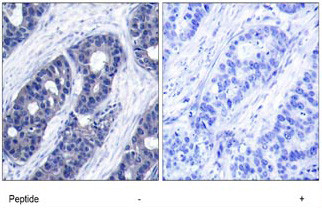 Immunohistochemical analysis of paraffin-embedded human breast carcinoma tissue, using IRS-1 Antibody (S636) ( APR08034G).