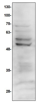 Western blot of Jurkat cell lysate with beta3-tubulin antibody. |