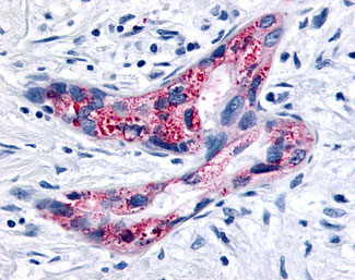 Anti-GPR35 antibody IHC of human Pancreas, Carcinoma. |