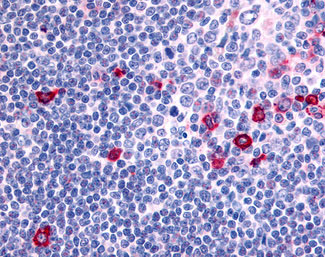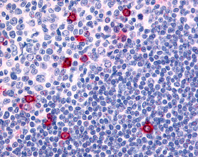 Anti-CNR2 / CB2 antibody APR11610G IHC of human germinal center and mantle zone.