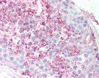 Anti-GPR18 antibody APR12201G IHC of human testis, seminiferous tubule. |