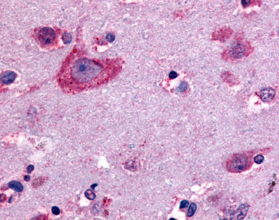 Anti-Delta Opioid Receptor antibody AMM06925G IHC of human brain, neurons and glia. |