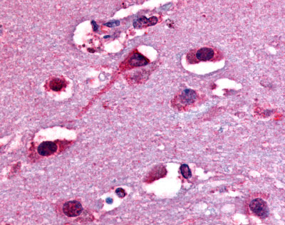 Anti-Delta Opioid Receptor antibody AMM06924G IHC of human brain, neurons and glia. |
