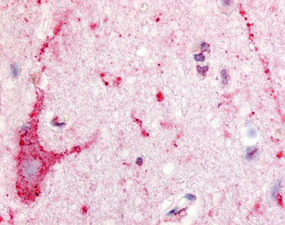 Anti-S1PR5 / EDG8 antibody APR13188G IHC of human brain, neuron and glia. |