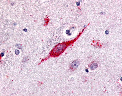 Anti-GPR85 antibody AMM07967G IHC of human brain, neuron. |