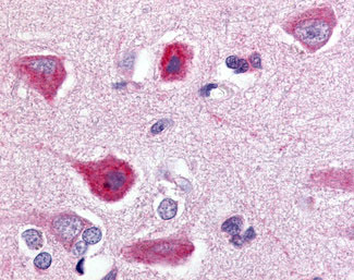 Anti-C5L2 antibody APR15206G IHC of human brain, cortex. |