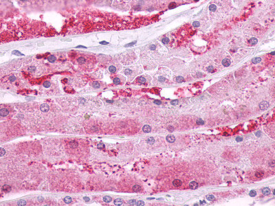 Anti-PTH1R antibody APR13009G IHC of human kidney, renal tubules.