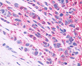 Anti-NMBR antibody IHC of human Skin, Melanoma. |