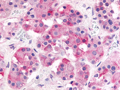 Anti-GHRHR antibody APR12023G IHC of human pituitary, anterior.