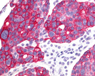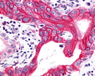 Anti-GHRHR antibody IHC of human Ovary, Carcinoma. |