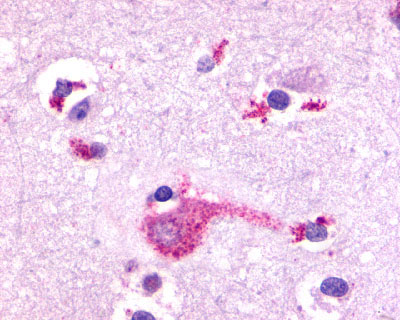 Anti-GRM2 / MGLUR2 antibody APR12292G IHC of human brain, neurons and glia. |