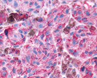 Anti-GRM8 / MGLUR8 antibody IHC of human Skin, Melanoma.