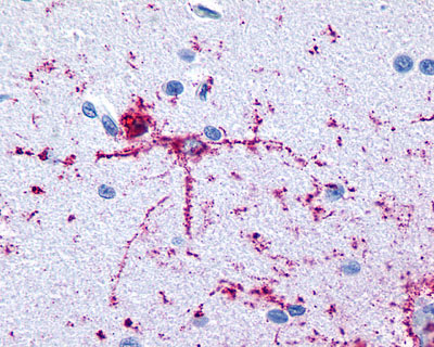 Anti-GRM8 / MGLUR8 antibody APR12310G IHC of human brain, neurons and glia. |