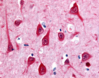 Anti-MTNR1B antibody AMM06505G IHC of human brain, hippocampus. |