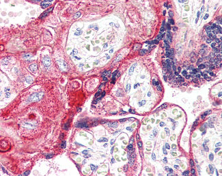 Anti-EP2 antibody AMR09616G IHC of human placenta. |