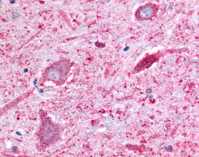 Anti-BAI2 antibody AMM05551G IHC of human brain, neurons.
