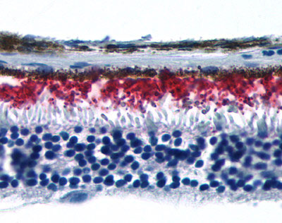 Anti-RHO / Rhodopsin antibody APR13101G IHC of human eye, retina. |