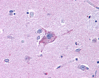 Anti-NPY5R antibody AMM06788G IHC of human brain, neurons and glia. |