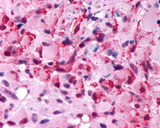 Anti-HTR1B / 5-HT2B Receptor antibody IHC of human Brain, Glioblastoma.
