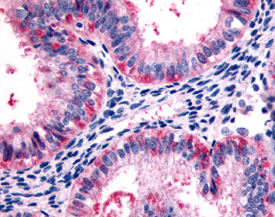 Anti-5HT2C Receptor antibody APR07863G IHC of human uterus, glandular cells. |