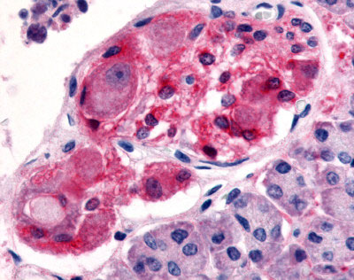 Anti-5HT2C Receptor antibody APR07862G IHC of human pancreas, ganglion and Schwann cells. |