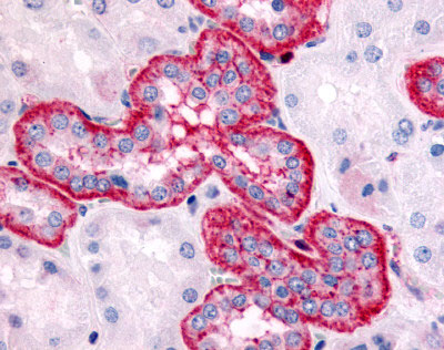 Anti-5HT2C Receptor antibody APR07861G IHC of human kidney, renal tubules. |