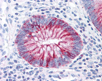 Anti-GPR31 antibody APR16548G IHC of human small intestine, epithelium.