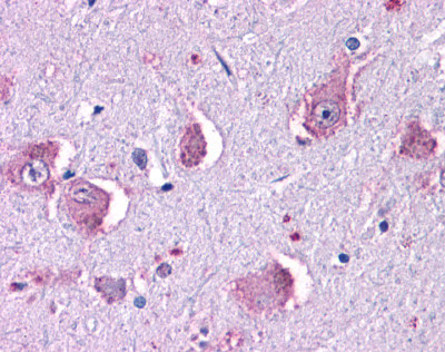 Anti-HRH1 / Histamine H1 Receptor antibody APR16716G IHC of human brain, neurons and glia.