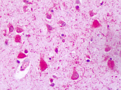 Anti-GPRC5A / RAI3 antibody IHC of human brain, neurons. |