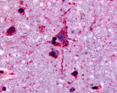 Anti-GPR45 antibody APR12226G IHC of human neurons and glia.