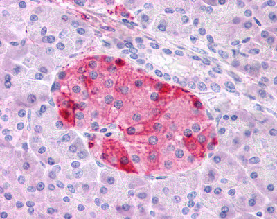 Anti-GIPR antibody AMM05913G IHC of human pancreas. |