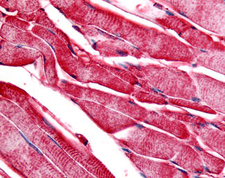 Anti-PYGM / Phosphorylase b antibody AMR09674G IHC of human skeletal muscle. |