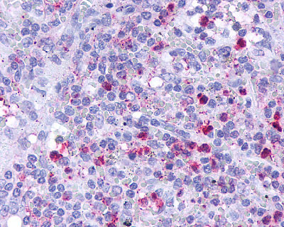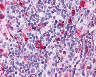 Anti-Leukotriene B4 Receptor / BLT1 antibody IHC of human Lymph Node, Hodgkins Lymphoma.