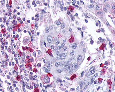 Anti-Leukotriene B4 Receptor / BLT1 antibody IHC of human Pancreas, Carcinoma and Leukocytes.