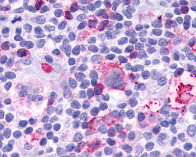 Anti-Leukotriene B4 Receptor / BLT1 antibody IHC of human Lymph Node, Hodgkins Lymphoma. |