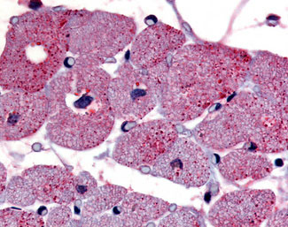 Anti-TPRA1 / GPR175 antibody AMM08301G IHC of human cardiac myocytes. |