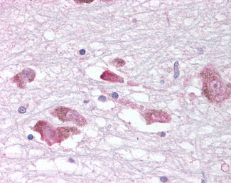 Anti-MCHR1 antibody APS00038G IHC of human brain, substantia nigra. |