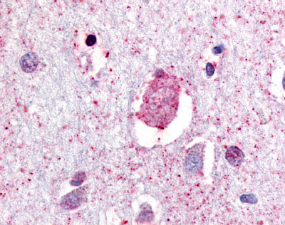Anti-GPR88 antibody AMM05968G IHC of human brain, neurons and glia. |