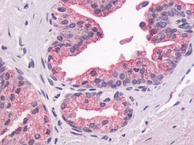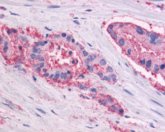 Anti-GPR87 antibody APR16631G IHC of human prostate, epithelium. |