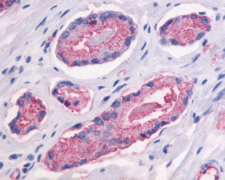 Anti-GPR87 antibody APR16629G IHC of human prostate, epithelium. |