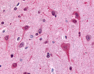 Anti-GPR75 antibody APR16600G IHC of human brain, neurons and glia. |