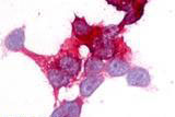 Human EMR2. BLAST analysis of the peptide immunogen showed no homology with other human proteins, except MYO18B (45%), FLJ13231 (40%).
