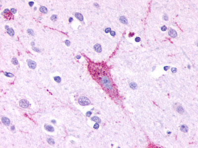 Anti-GPR61 antibody APR16588G IHC of human brain, neurons and glia. |