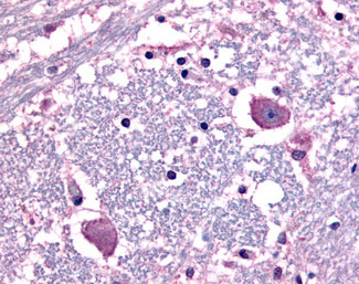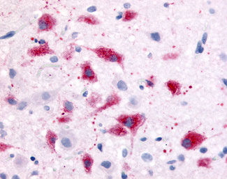 Anti-CRF1 antibody APG02765G IHC of human human brain, neurons and glia.