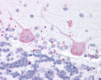Anti-MCHR2 antibody AMM06346G IHC of human brain, cerebellum. |