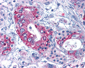 Anti-ACKR3 / CXCR7 / RDC1 antibody IHC of human Pancreas, Carcinoma.