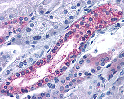 Anti-CXCR7 antibody APR14766G IHC of human kidney, renal tubule. |